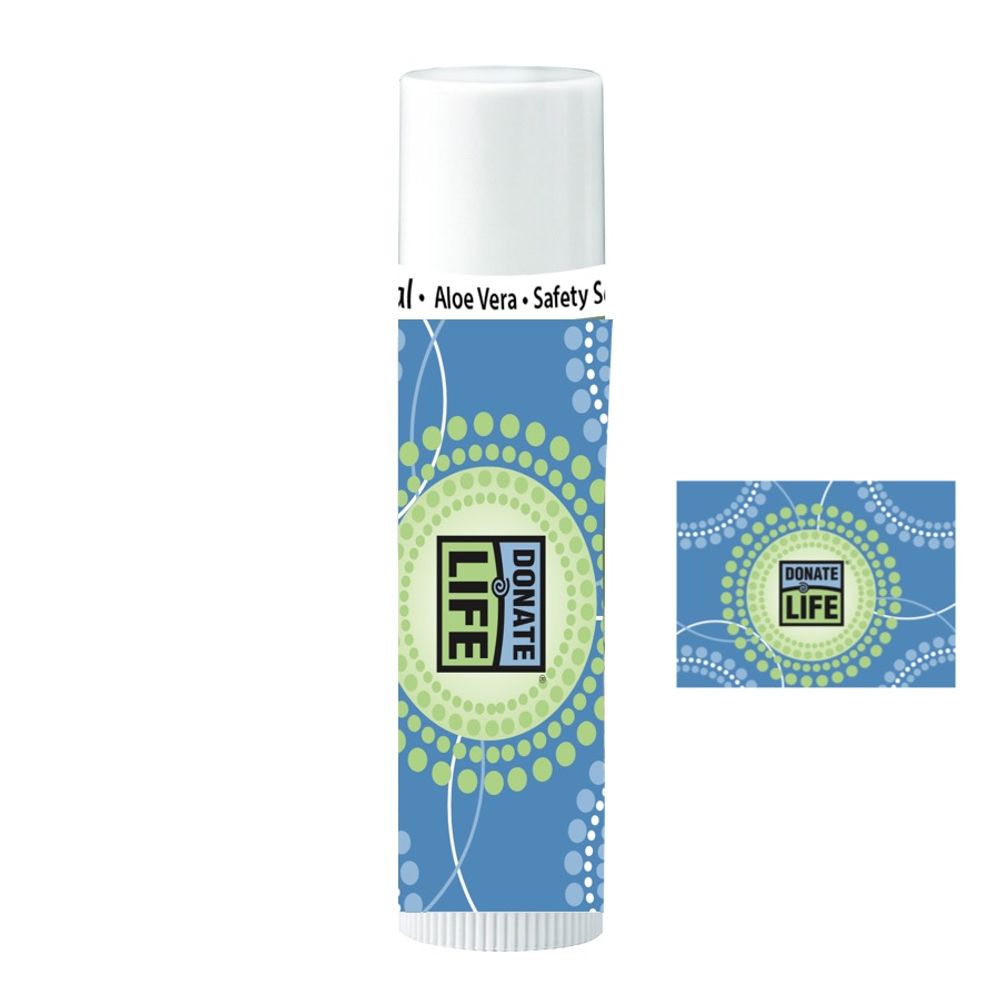 Standard decoration of colorful swirl design with Donate Life logo on a white label.